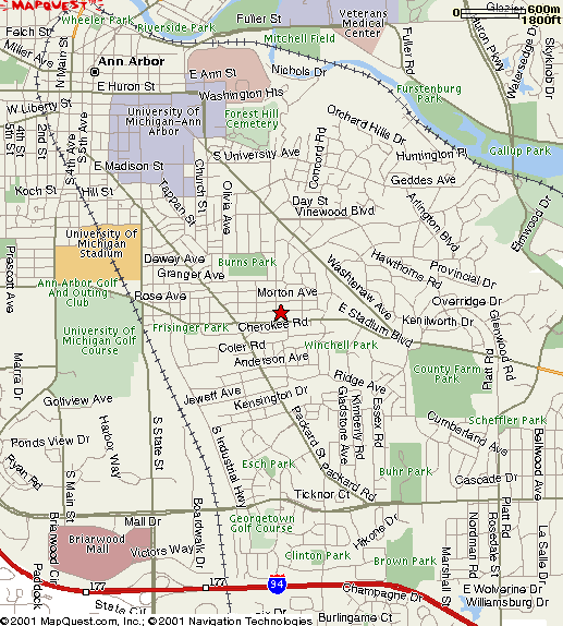 For Ann Arborites: We live at 1724 Shadford, on the southwest corner of Shadford and Harding. Shadford is parallel to Stadium, one block north. Harding is three blocks east of Packard. Thus we're a total of four blocks from the corner of Stadium and Packard.