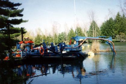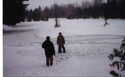 In the summer of 98, we had part of the pond dredged, using the sand from the bottom to fill in the swamp undermining one of the other buildings. This gave us a nice deep swimming spot, and plenty of sandy beach. We topped this off with a dock and rope swing.